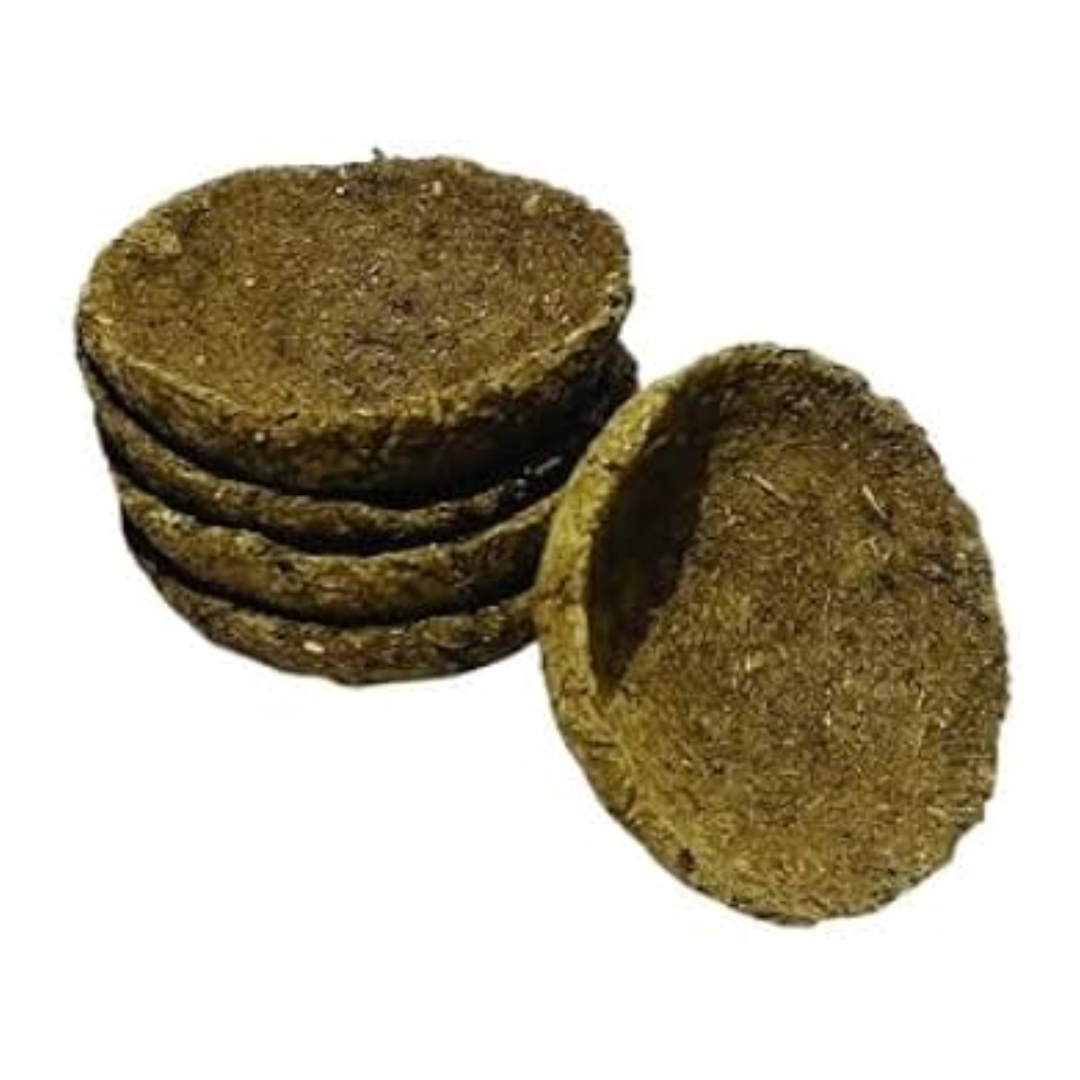 These specially designed bowl-shaped cow dung cakes are perfect for holding hawan samagri. They are easy to handle, emit less fume, and produce a soothing aroma, making them ideal for daily use.